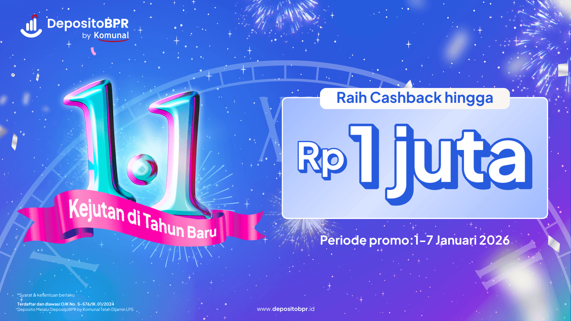 Awal tahun adalah waktu yang pas buat mulai langkah finansial yang lebih cerdas. Kalau resolusi 2026 kamu ingin lebih cuan dan tetap aman, promo 1.1 Kejutan Tahun Baru dari DepositoBPR by Komunal siap jadi jawabannya!