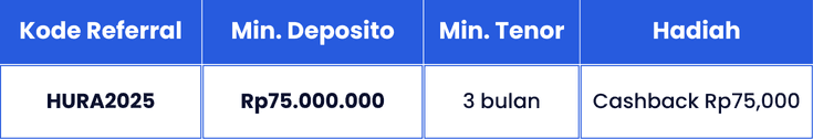Promo ini berlaku bagi Deposan Baru yang membuka akun DepositoBPR menggunakan kode referal ‘HURA2025’
